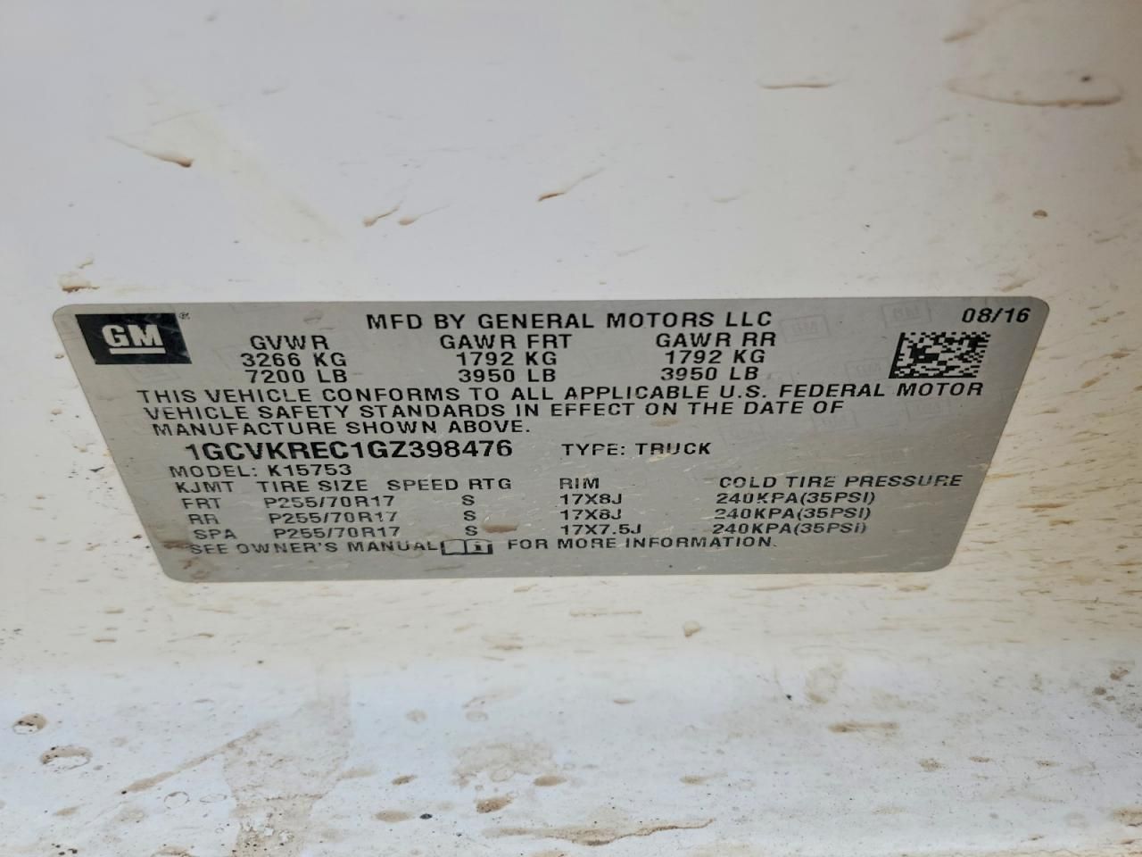 1GCVKREC1GZ398476