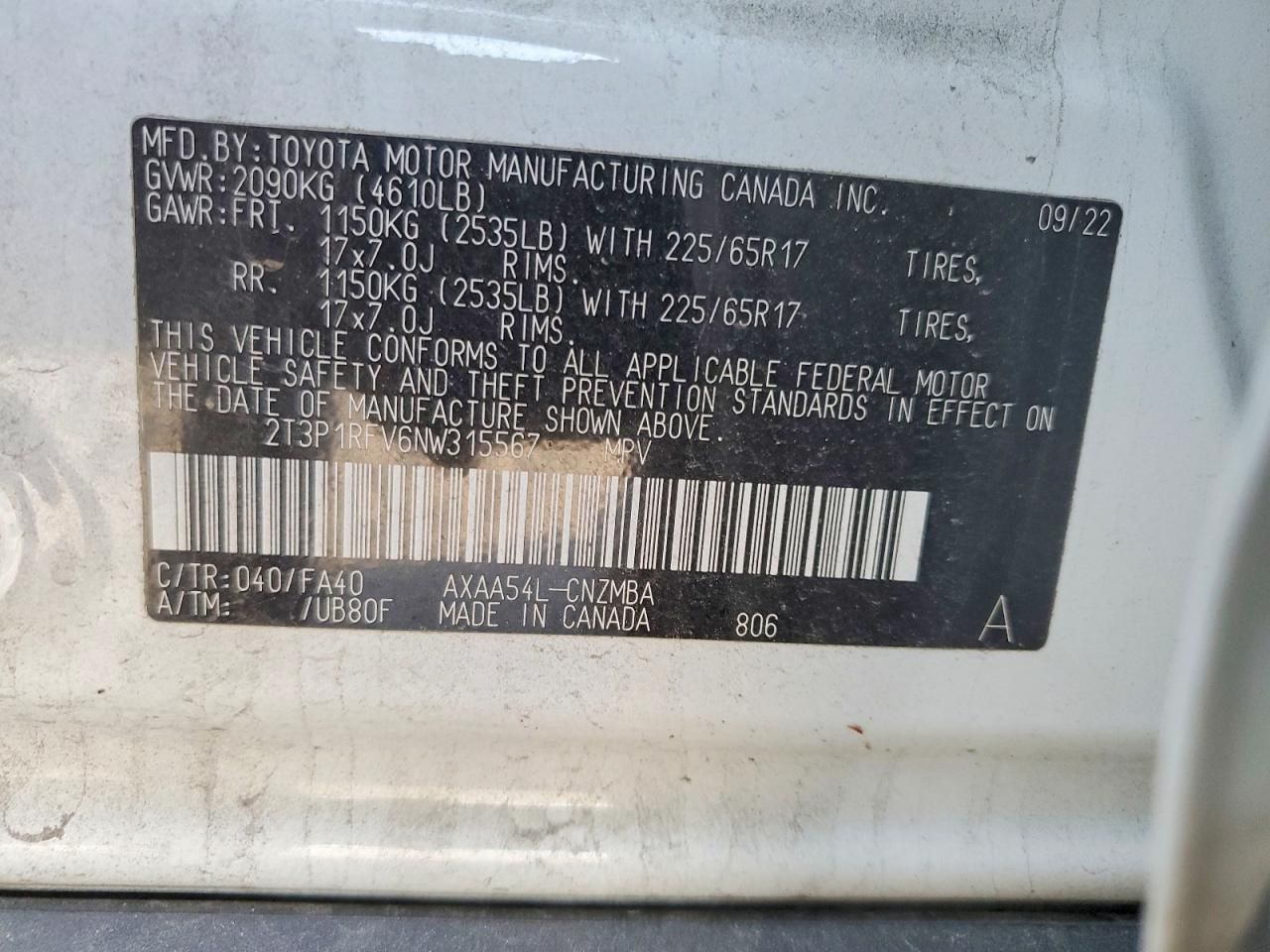 2T3P1RFV6NW315567