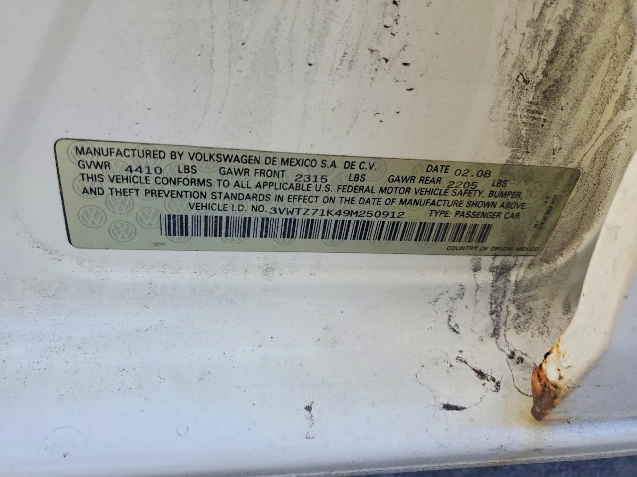 3VWTZ71K49M250912