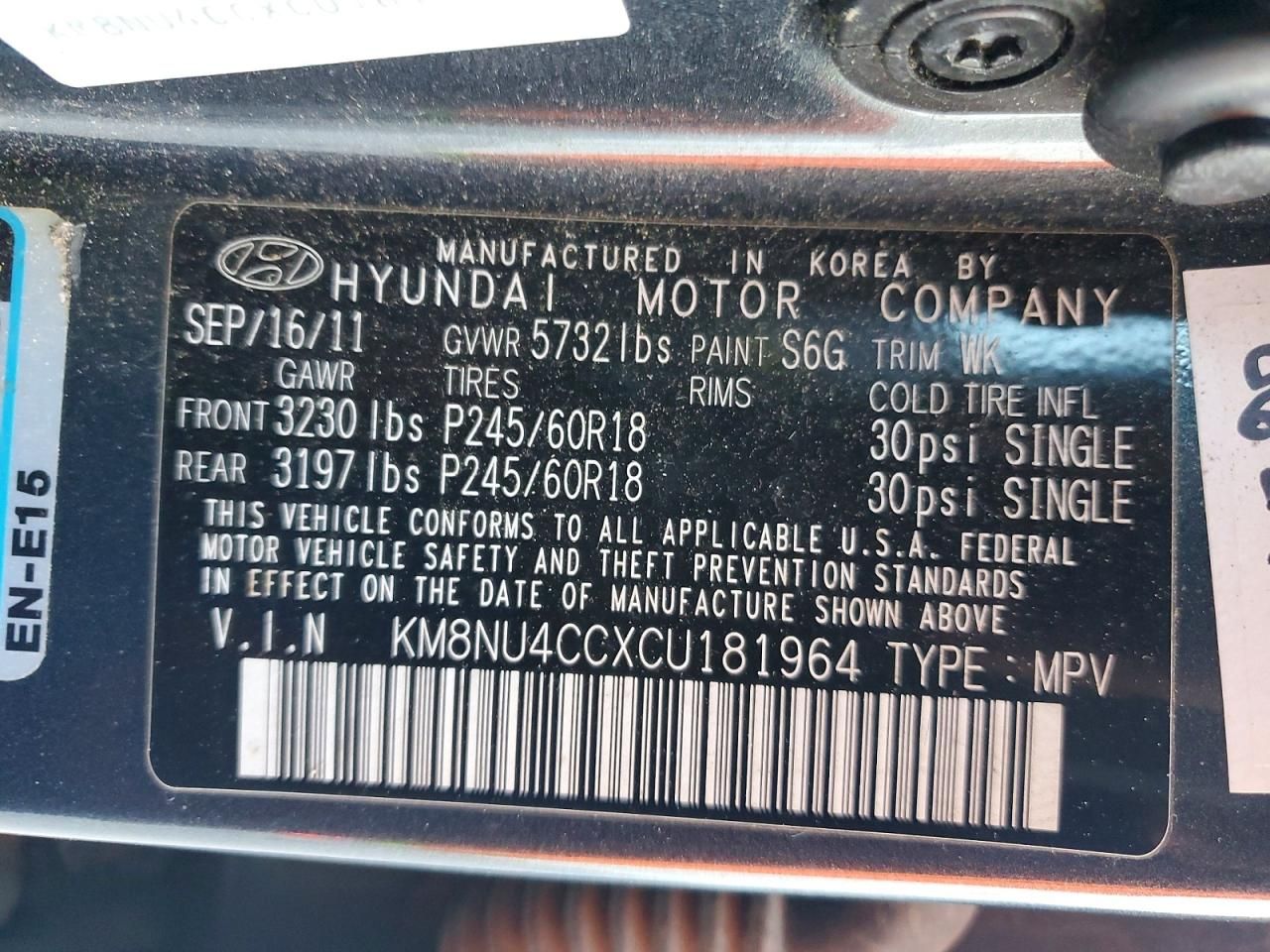 2012 HYUNDAI VERACRUZ G